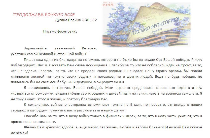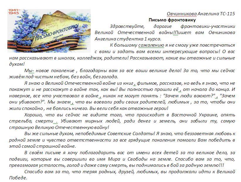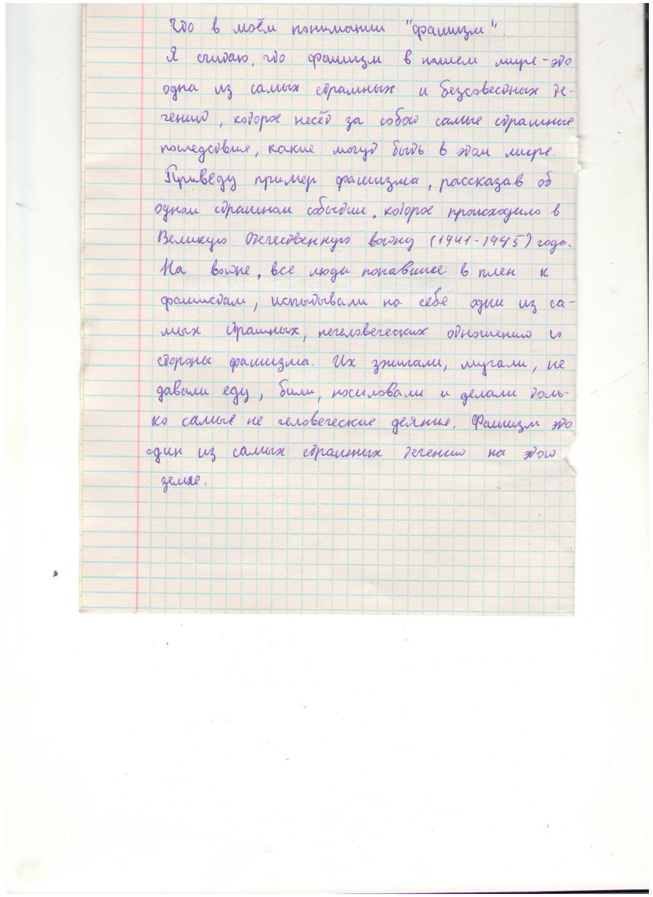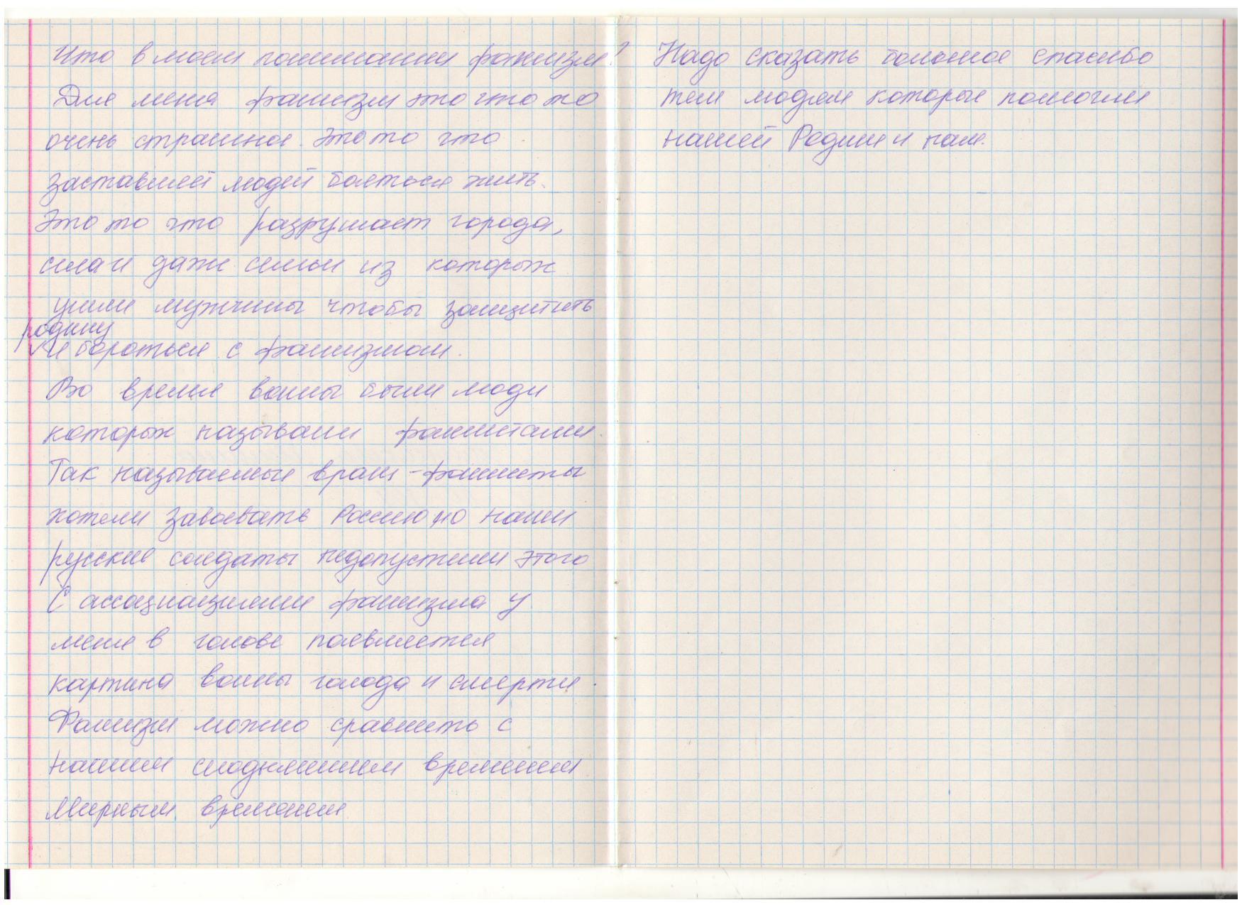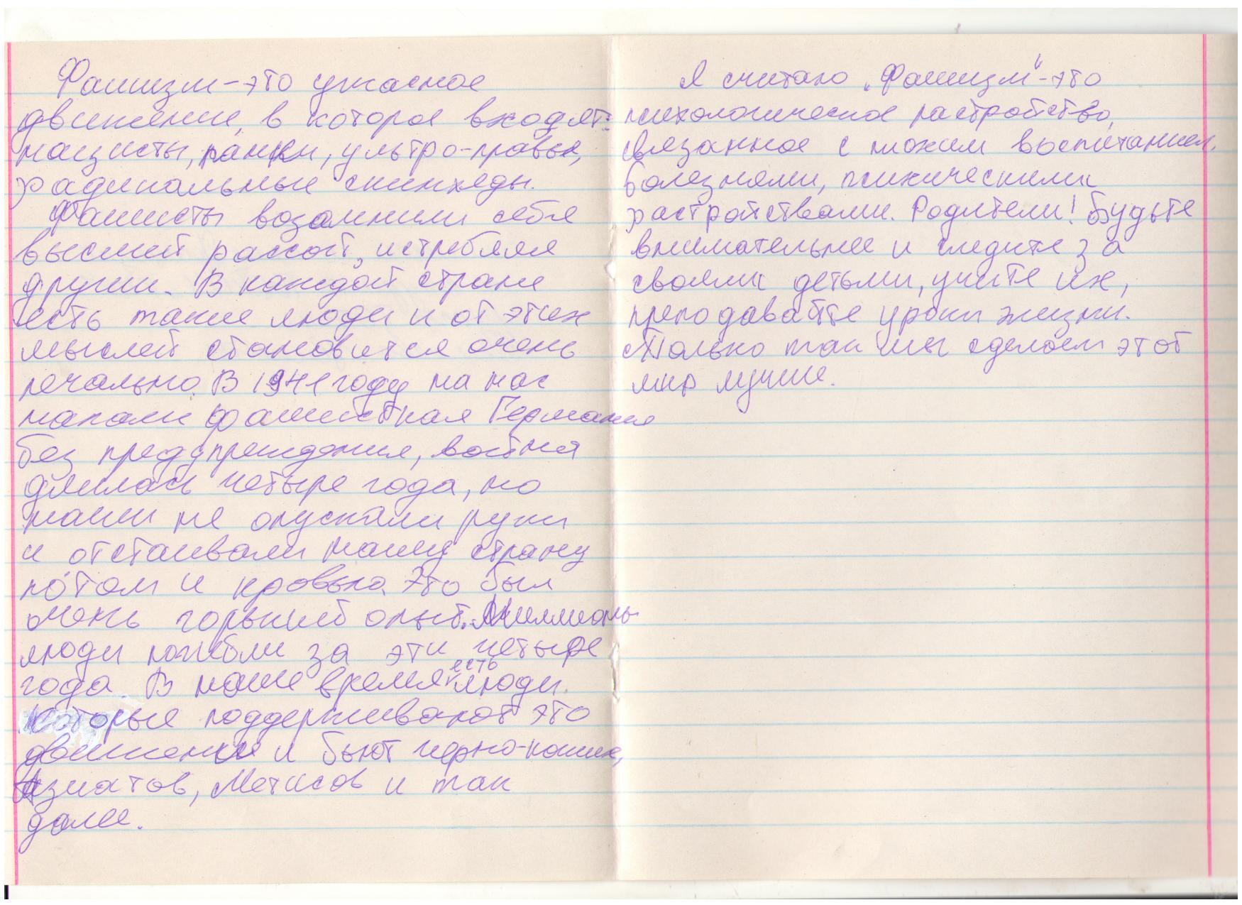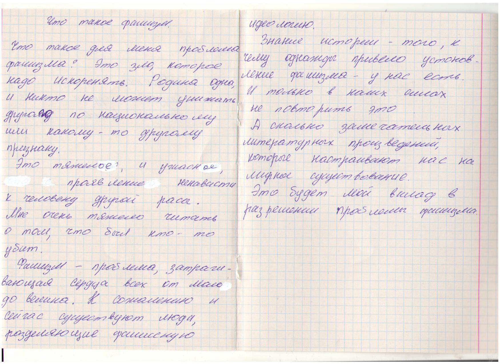 В своих работах ребята размышляли о причинах войны, последствиях, высказывали свое мнение. И единодушно пришли к такому выводу, что спорные вопросы нужно решать мирным путем, жить нужно в мире.