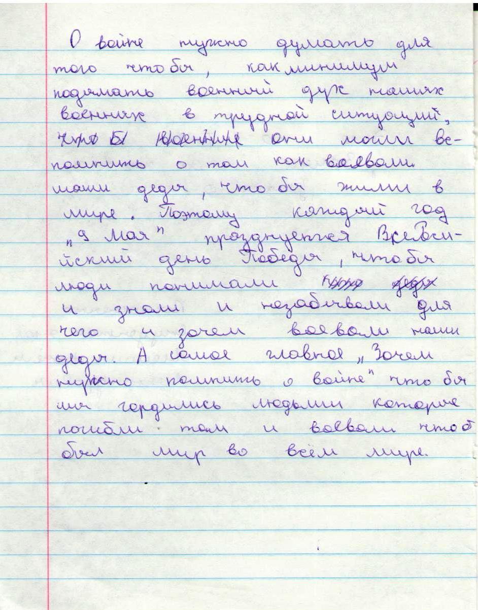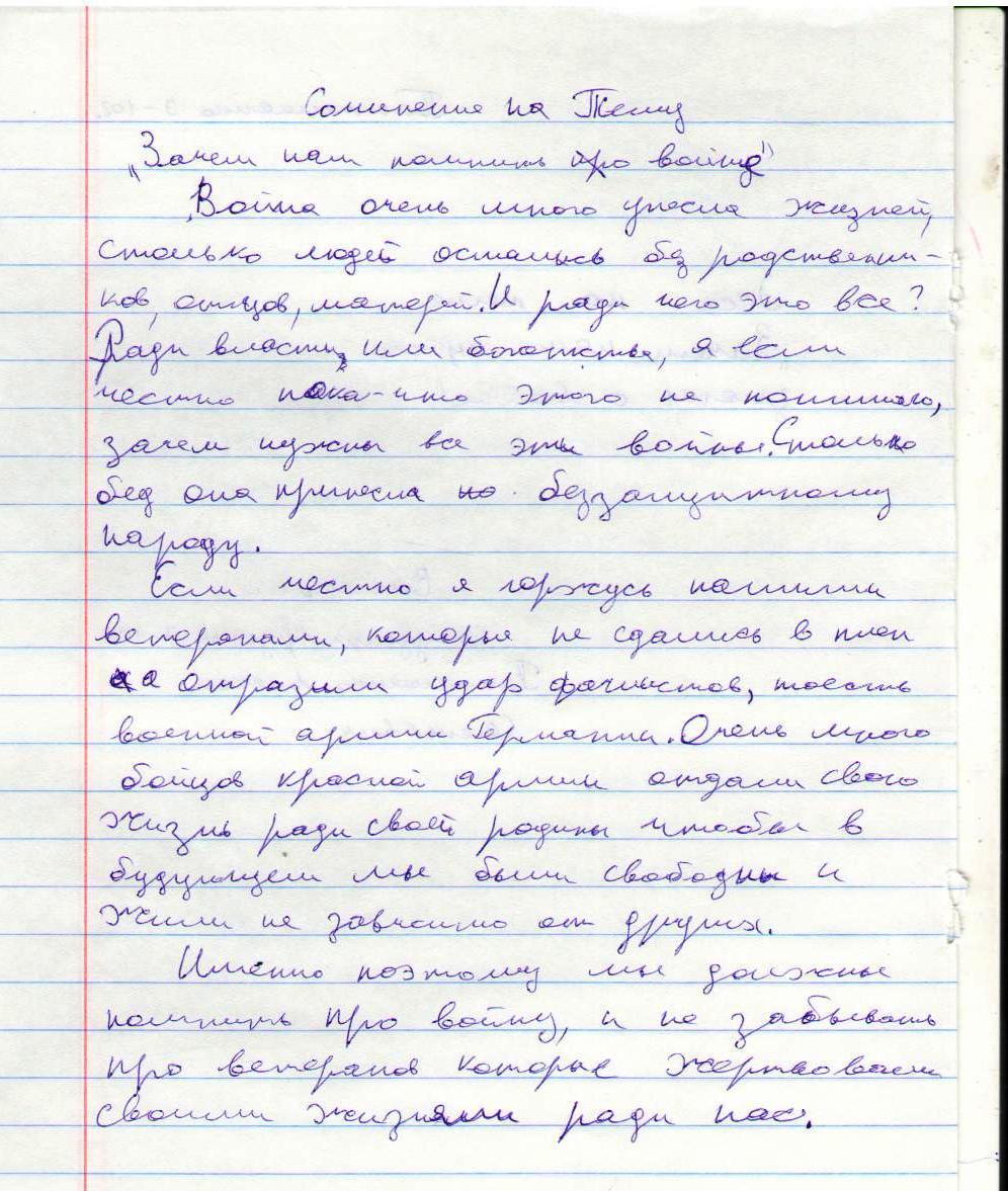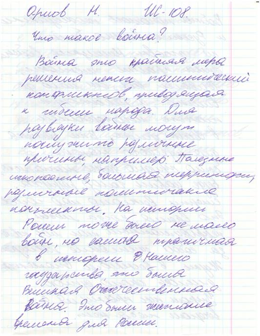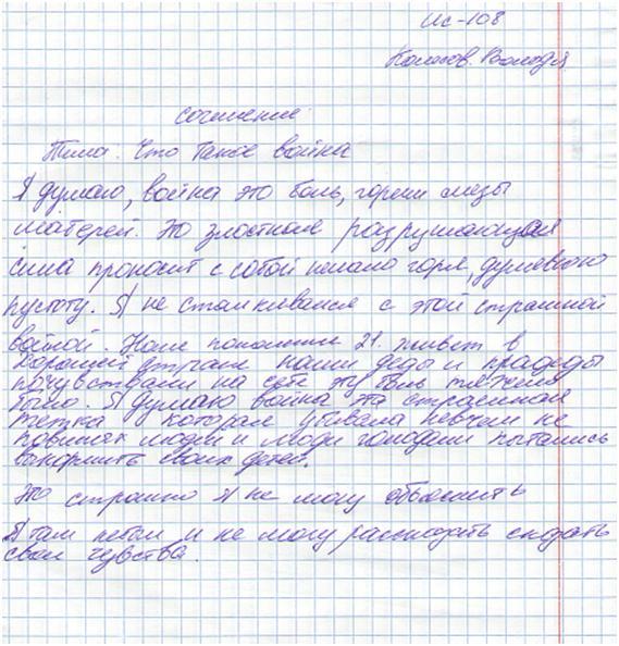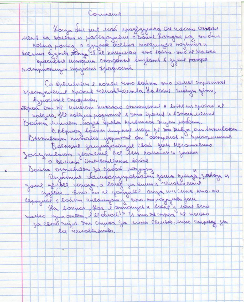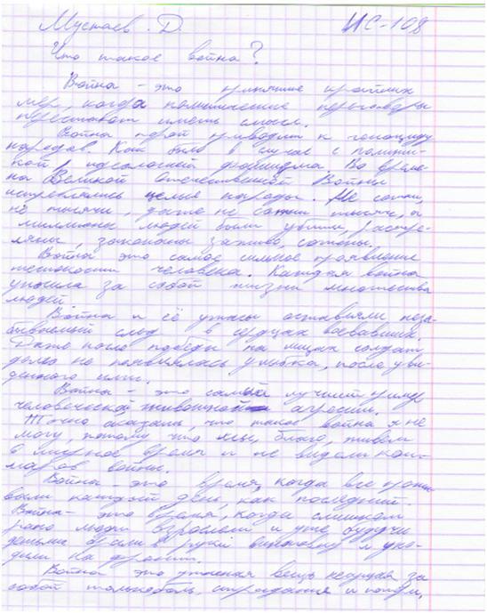 В своих работах ребята размышляли о причинах войны, последствиях, высказывали свое