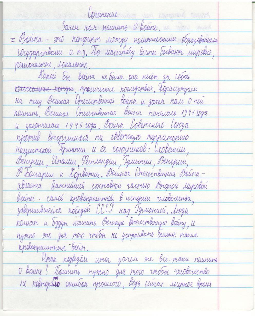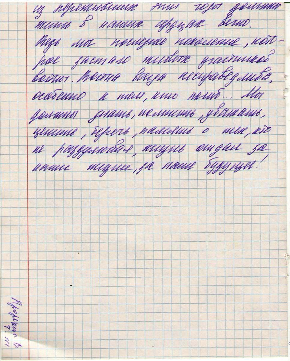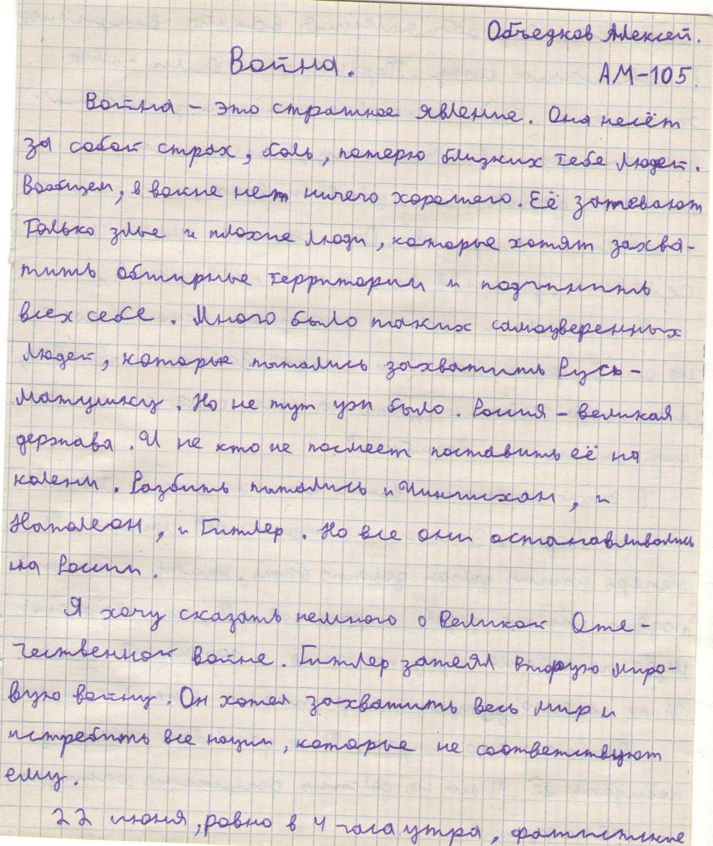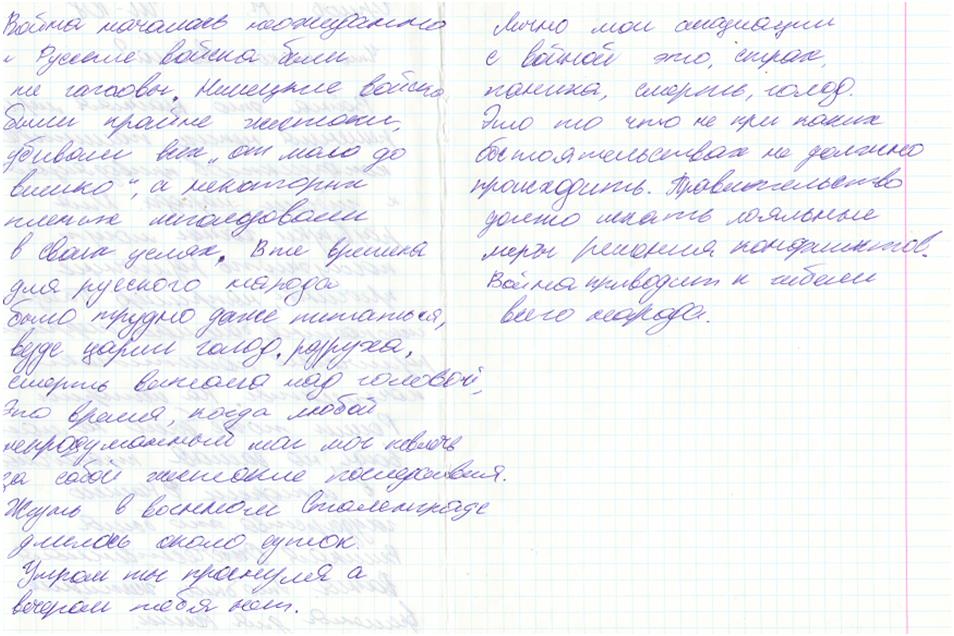 В своих работах ребята размышляли о причинах войны, последствиях, высказывали свое