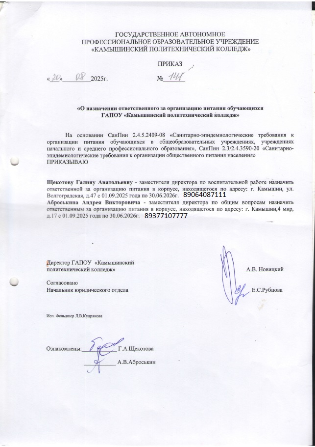 Ответственный за организацию питания